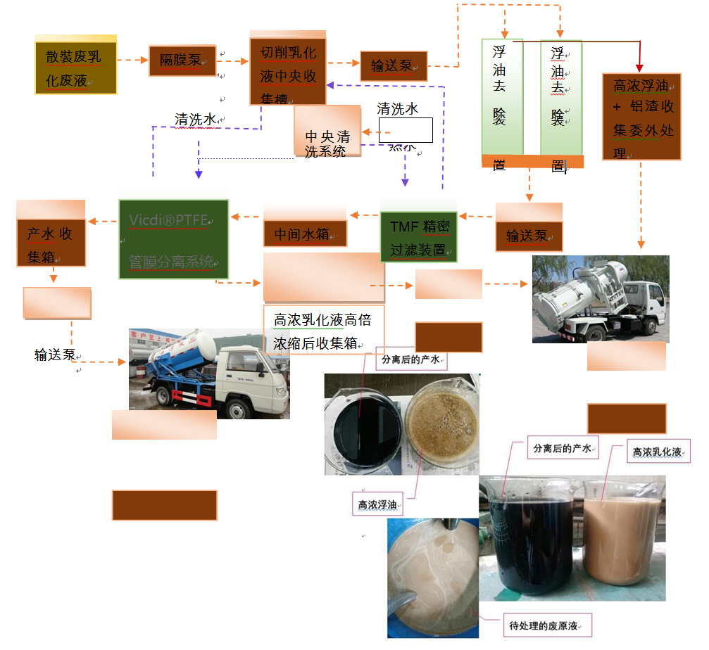 威迪使用自主研發(fā)的TMF管式微濾膜系統(tǒng)+納濾系統(tǒng)處理技術(shù),克服了傳統(tǒng)乳化廢液處理工藝的缺點,為客戶提供高效、可靠地乳化廢液解決方案。
