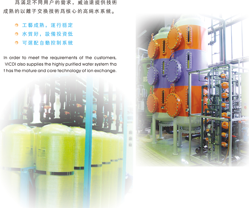 EDI裝置是將離子交換樹脂充夾在陰/陽離子交換膜之間形成EDI單元。利用樹脂制備高純水,利用水電解產(chǎn)生的H+、OH-離子在膜堆內(nèi)再生失效的樹脂。因此EDI系統(tǒng)不需要酸堿再生且能連續(xù)生產(chǎn),系統(tǒng)自動化程度高。