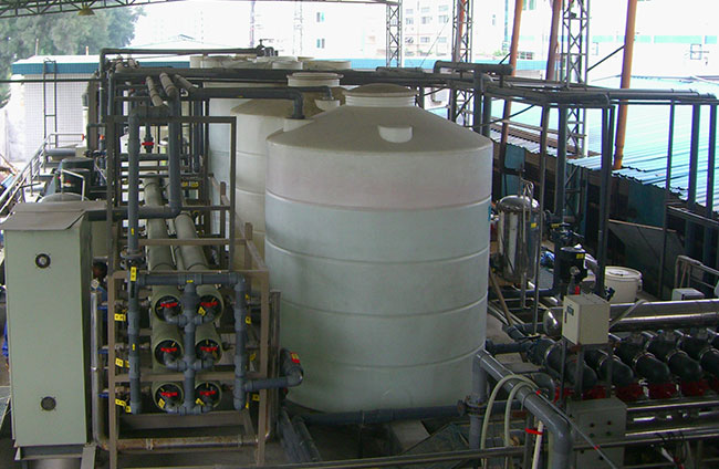 綜合廢水包含經過預處理的含鉻、含氰、高COD廢水和其它生產的污水,經過TMF系統處理,后接納濾系統和離子交換系統,直接回用或深度處理回用。