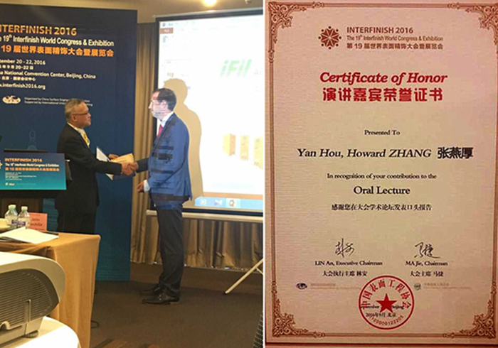 2016年9月20日至22日,廣東威迪科技股份有限公司(以下簡稱:威迪)董事長張燕厚與董事梁耀林一同出席了于北京?國家會議中心召開的第19屆世界表面精飾大會暨展覽會(Interfinish2016)。