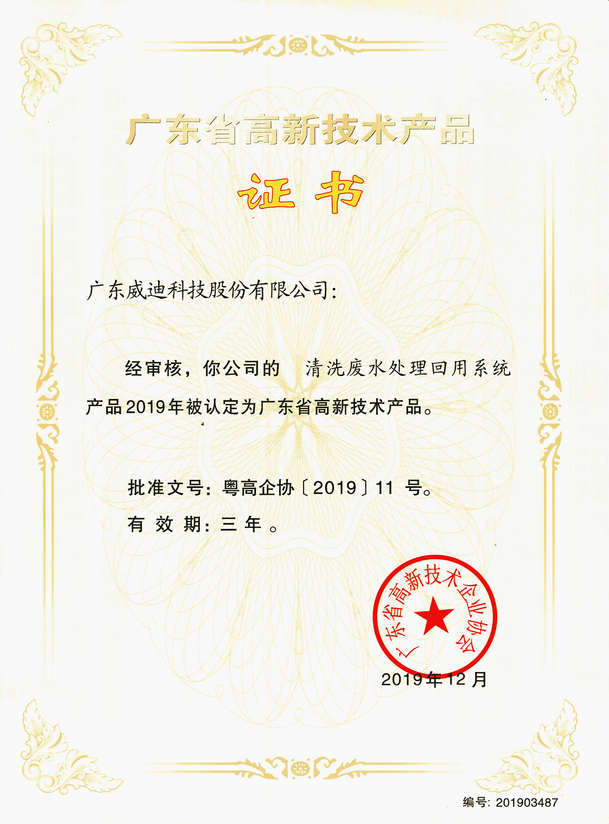 2019年12月高新技術產品-清洗廢水處理回用系統