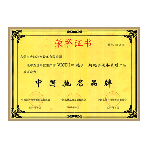 中國著名品牌證書