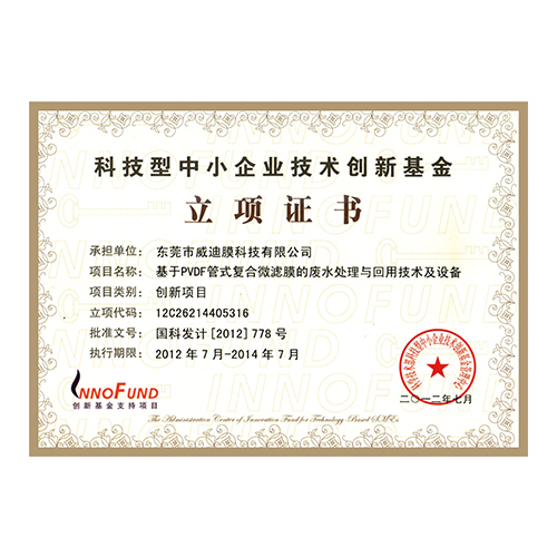 國家創(chuàng)新基金立項證書