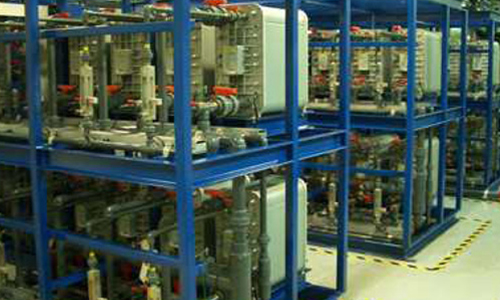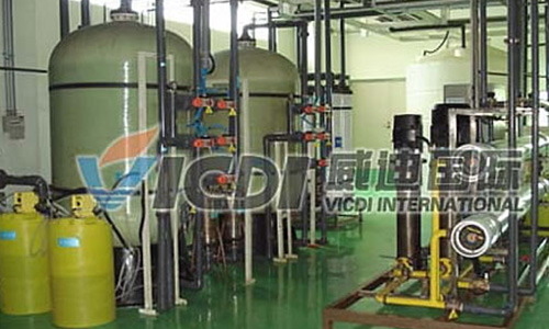 EDI裝置是將離子交換樹脂充夾在陰/陽離子交換膜之間形成EDI單元。利用樹脂制備高純水,利用水電解產生的H+、OH-離子在膜堆內再生失效的樹脂。因此EDI系統不需要酸堿再生且能連續生產,系統自動化程度高。